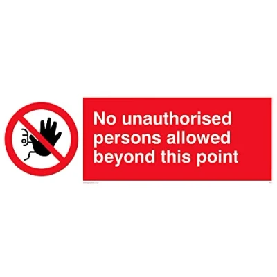 No Symbol This sign is made from vinyl / sticker ‘Air Release†vinyl makes it easy to stick to flat, clean surfaces without bubbles. Not for rough, plastic or dusty surfaces. 31 landscape Sign Text: No Unauthorised Beyond Point