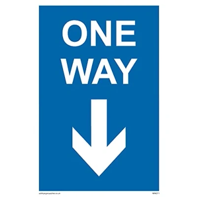 No Symbol This sign is made from vinyl / sticker ‘Air Release†vinyl makes it easy to stick to flat, clean surfaces without bubbles. Not for rough, plastic or dusty surfaces. A6 portrait Sign Text: One way with down directional arrow