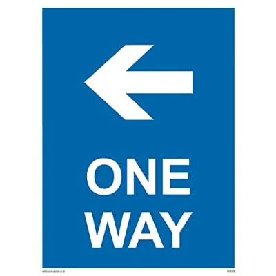 M930 : Left arrow This sign is made from vinyl high tack A stickier sticker. Uses a stronger adhesive to make it more suitable for plastic surfaces like Wheelie Bins or where the sticker might get rubbed. A5 portrait Sign Text: One way with left directional arrow