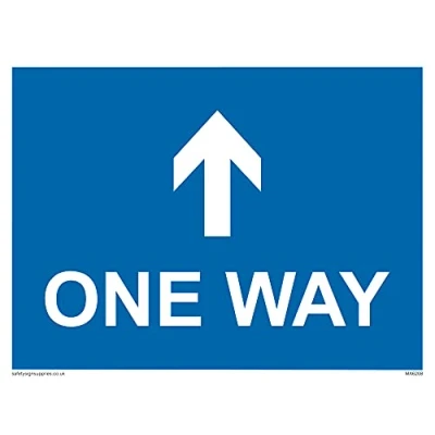No Symbol This sign is made from vinyl / sticker ‘Air Release†vinyl makes it easy to stick to flat, clean surfaces without bubbles. Not for rough, plastic or dusty surfaces. A5 landscape Sign Text: One way with up directional arrow