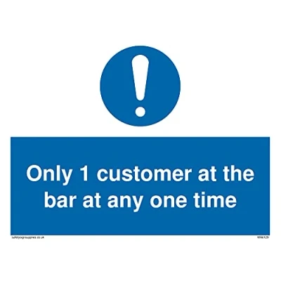 No Symbol This sign is made from vinyl / sticker ‘Air Release†vinyl makes it easy to stick to flat, clean surfaces without bubbles. Not for rough, plastic or dusty surfaces. A5 landscape Sign Text: Only 1 customer at the bar at any one time