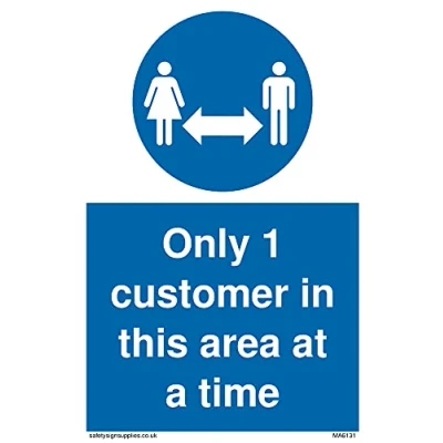 No Symbol This sign is made from vinyl / sticker ‘Air Release†vinyl makes it easy to stick to flat, clean surfaces without bubbles. Not for rough, plastic or dusty surfaces. A6 portrait Sign Text: Only 1 customer in this area at a time