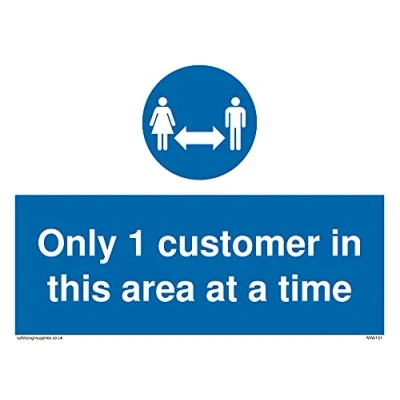 No Symbol This sign is made from vinyl / sticker ‘Air Release†vinyl makes it easy to stick to flat, clean surfaces without bubbles. Not for rough, plastic or dusty surfaces. A5 landscape Sign Text: Only 1 customer in this area at a time