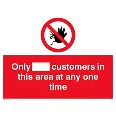 Pack of five Only [ ] customers in this area at any one time Sign 200x150mm A5L