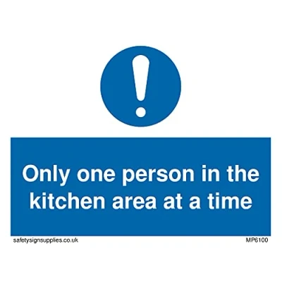 No Symbol This sign is made from vinyl / sticker ‘Air Release†vinyl makes it easy to stick to flat, clean surfaces without bubbles. Not for rough, plastic or dusty surfaces. A7 landscape Sign Text: Only one person in the kitchen area at a time