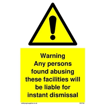 No Symbol This sign is made from vinyl / sticker ‘Air Release†vinyl makes it easy to stick to flat, clean surfaces without bubbles. Not for rough, plastic or dusty surfaces. A6 portrait Sign Text: Persons Abusing Facilities