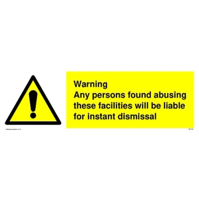 No Symbol This sign is made from vinyl / sticker ‘Air Release†vinyl makes it easy to stick to flat, clean surfaces without bubbles. Not for rough, plastic or dusty surfaces. 31 landscape Sign Text: Persons Abusing Facilities