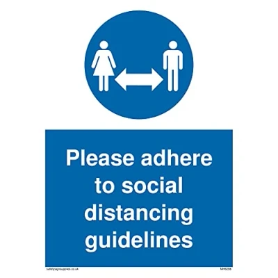 M916 : Keep distance This sign is made from vinyl high tack A stickier sticker. Uses a stronger adhesive to make it more suitable for plastic surfaces like Wheelie Bins or where the sticker might get rubbed. A5 portrait Sign Text: Please adhere to social distancing guidelines
