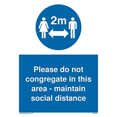 No Symbol This sign is made from vinyl / sticker ‘Air Release†vinyl makes it easy to stick to flat, clean surfaces without bubbles. Not for rough, plastic or dusty surfaces. A5 portrait Sign Text: Please do not congregate in this areamaintain social distance with social distancing s...