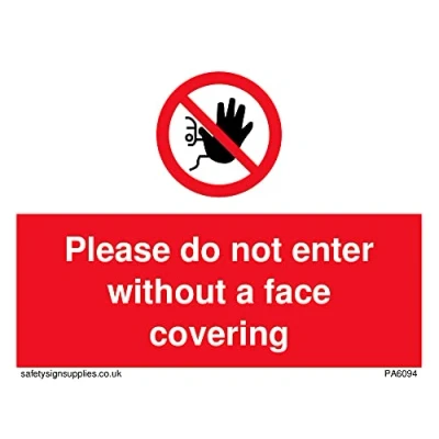 No Symbol This sign is made from vinyl / sticker ‘Air Release†vinyl makes it easy to stick to flat, clean surfaces without bubbles. Not for rough, plastic or dusty surfaces. A7 landscape Sign Text: Please do not enter without a face covering
