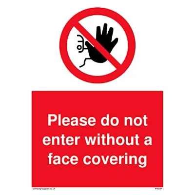 P905 : No access This sign is made from vinyl high tack A stickier sticker. Uses a stronger adhesive to make it more suitable for plastic surfaces like Wheelie Bins or where the sticker might get rubbed. A5 portrait Sign Text: Please do not enter without a face covering