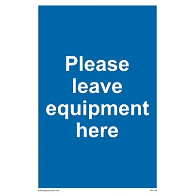 No Symbol This sign is made from vinyl / sticker ‘Air Release†vinyl makes it easy to stick to flat, clean surfaces without bubbles. Not for rough, plastic or dusty surfaces. A6 portrait Sign Text: Please leave equipment here
