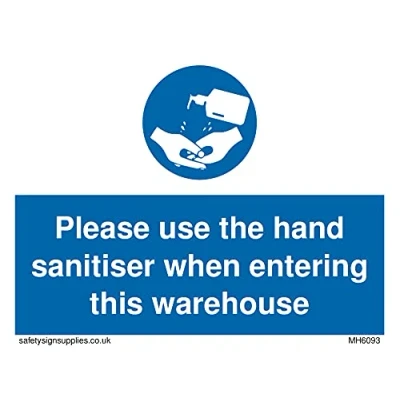 Pack of five Please use the hand sanitiser when entering this warehouse Sign 100x75mm A7L
