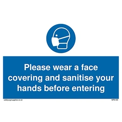 No Symbol This sign is made from vinyl / sticker ‘Air Release†vinyl makes it easy to stick to flat, clean surfaces without bubbles. Not for rough, plastic or dusty surfaces. A6 landscape Sign Text: Please wear a face covering and sanitise your hands before entering