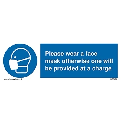 Pack of five Please wear a face mask otherwise one will be provided at charge Sign 150x50mm L15