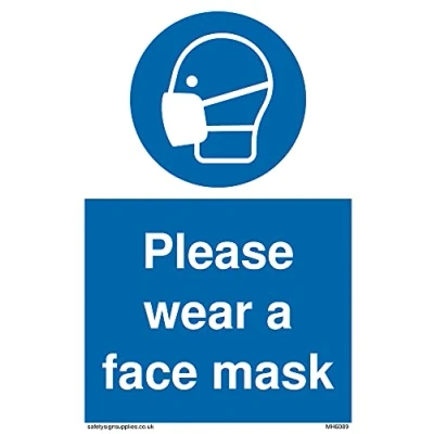 No Symbol This sign is made from vinyl / sticker ‘Air Release†vinyl makes it easy to stick to flat, clean surfaces without bubbles. Not for rough, plastic or dusty surfaces. A6 portrait Sign Text: Please wear a face mask