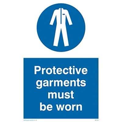 No Symbol This sign is made from vinyl / sticker ‘Air Release†vinyl makes it easy to stick to flat, clean surfaces without bubbles. Not for rough, plastic or dusty surfaces. A6 portrait Sign Text: Protective Garments Must Be Worn