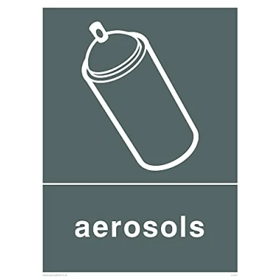 Refuse aerosols This sign is made from vinyl high tack A stickier sticker. Uses a stronger adhesive to make it more suitable for plastic surfaces like Wheelie Bins or where the sticker might get rubbed. A5 portrait Sign Text: Recycling-aersols