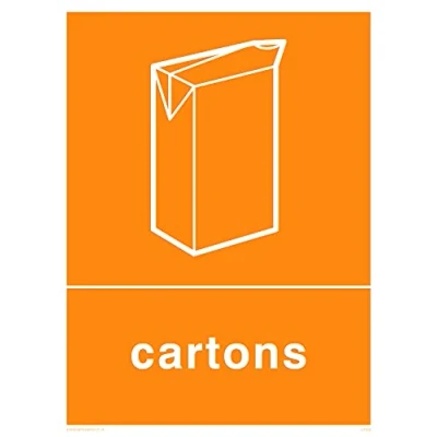 Refuse cartons This sign is made from vinyl high tack A stickier sticker. Uses a stronger adhesive to make it more suitable for plastic surfaces like Wheelie Bins or where the sticker might get rubbed. A5 portrait Sign Text: Recycling-cartons