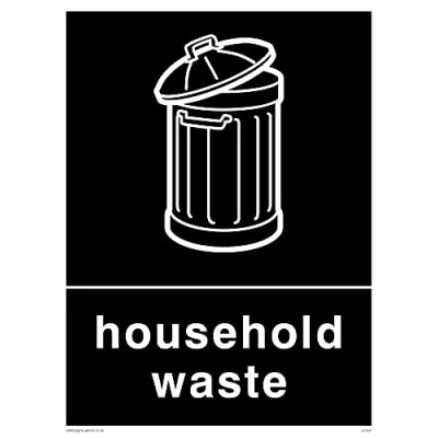 No Symbol This sign is made from vinyl / sticker ‘Air Release†vinyl makes it easy to stick to flat, clean surfaces without bubbles. Not for rough, plastic or dusty surfaces. A5 portrait Sign Text: Recycling-household-waste