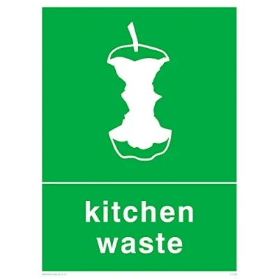 No Symbol This sign is made from vinyl / sticker ‘Air Release†vinyl makes it easy to stick to flat, clean surfaces without bubbles. Not for rough, plastic or dusty surfaces. A5 portrait Sign Text: Recycling-kitchen-waste