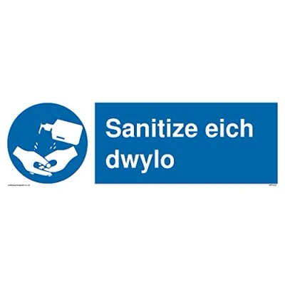 No Symbol This sign is made from vinyl / sticker ‘Air Release†vinyl makes it easy to stick to flat, clean surfaces without bubbles. Not for rough, plastic or dusty surfaces. 31 landscape Sign Text: Sanitize eich dwylo