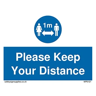 No Symbol This sign is made from vinyl / sticker ‘Air Release†vinyl makes it easy to stick to flat, clean surfaces without bubbles. Not for rough, plastic or dusty surfaces. A7 landscape Sign Text: Social Distance 1m symbol with Please keep your distance