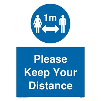 M918 : Keep 1m distance This sign is made from vinyl high tack A stickier sticker. Uses a stronger adhesive to make it more suitable for plastic surfaces like Wheelie Bins or where the sticker might get rubbed. A5 portrait Sign Text: Social Distance 1m symbol with Please keep your distance
