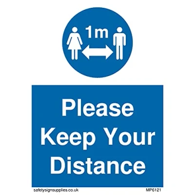 No Symbol This sign is made from vinyl / sticker ‘Air Release†vinyl makes it easy to stick to flat, clean surfaces without bubbles. Not for rough, plastic or dusty surfaces. A7 portrait Sign Text: Social Distance 1m symbol with Please keep your distance