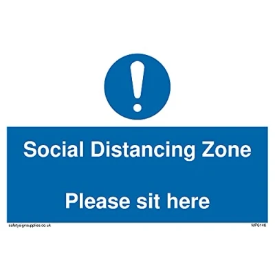 No Symbol This sign is made from vinyl / sticker ‘Air Release†vinyl makes it easy to stick to flat, clean surfaces without bubbles. Not for rough, plastic or dusty surfaces. A6 landscape Sign Text: Social Distancing Zone Please sit here