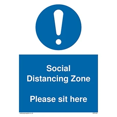 No Symbol This sign is made from vinyl / sticker ‘Air Release†vinyl makes it easy to stick to flat, clean surfaces without bubbles. Not for rough, plastic or dusty surfaces. A5 portrait Sign Text: Social Distancing Zone Please sit here