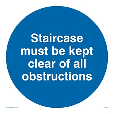 Pack of five Staircase Kept Clear All Obstructions Sign 150x150mm S15