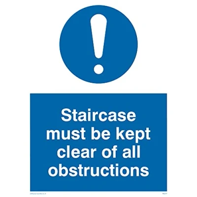 No Symbol This sign is made from vinyl / sticker ‘Air Release†vinyl makes it easy to stick to flat, clean surfaces without bubbles. Not for rough, plastic or dusty surfaces. A5 portrait Sign Text: Staircase Kept Clear All Obstructions