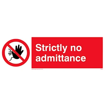 No Symbol This sign is made from vinyl / sticker ‘Air Release†vinyl makes it easy to stick to flat, clean surfaces without bubbles. Not for rough, plastic or dusty surfaces. 15 landscape Sign Text: Strictly No Admittance