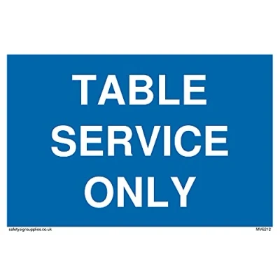 No Symbol This sign is made from vinyl / sticker ‘Air Release†vinyl makes it easy to stick to flat, clean surfaces without bubbles. Not for rough, plastic or dusty surfaces. A6 landscape Sign Text: Table service only