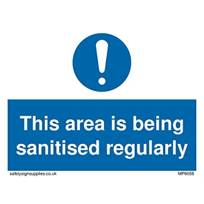 No Symbol This sign is made from vinyl / sticker ‘Air Release†vinyl makes it easy to stick to flat, clean surfaces without bubbles. Not for rough, plastic or dusty surfaces. A7 landscape Sign Text: This area is being sanitised regularly
