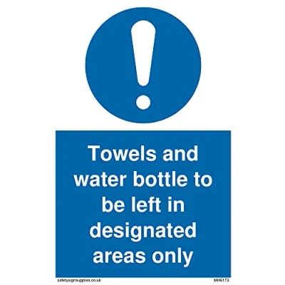 No Symbol This sign is made from vinyl / sticker ‘Air Release†vinyl makes it easy to stick to flat, clean surfaces without bubbles. Not for rough, plastic or dusty surfaces. A6 portrait Sign Text: Towels and water bottle to be left in deated areas only