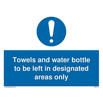 No Symbol This sign is made from vinyl / sticker ‘Air Release†vinyl makes it easy to stick to flat, clean surfaces without bubbles. Not for rough, plastic or dusty surfaces. A5 landscape Sign Text: Towels and water bottle to be left in deated areas only