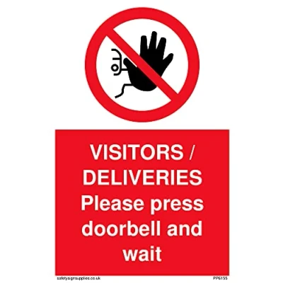 No Symbol This sign is made from vinyl / sticker ‘Air Release†vinyl makes it easy to stick to flat, clean surfaces without bubbles. Not for rough, plastic or dusty surfaces. A6 portrait Sign Text: VISITORS