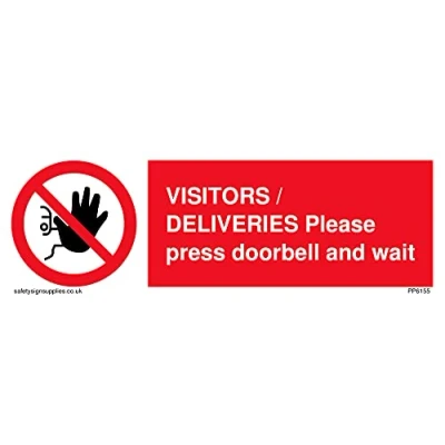 No Symbol This sign is made from vinyl / sticker ‘Air Release†vinyl makes it easy to stick to flat, clean surfaces without bubbles. Not for rough, plastic or dusty surfaces. 15 landscape Sign Text: VISITORS