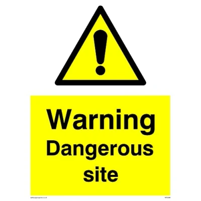 No Symbol This sign is made from vinyl / sticker ‘Air Release†vinyl makes it easy to stick to flat, clean surfaces without bubbles. Not for rough, plastic or dusty surfaces. A5 portrait Sign Text: Warning Dangerous Site