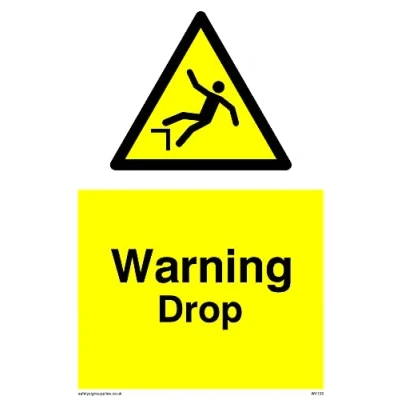 Pack of five Warning Drop Sign 100x150mm A6P