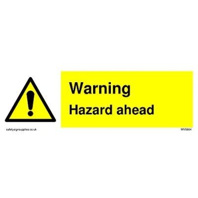 No Symbol This sign is made from vinyl / sticker ‘Air Release†vinyl makes it easy to stick to flat, clean surfaces without bubbles. Not for rough, plastic or dusty surfaces. 15 landscape Sign Text: Warning Hazard ahead with general warning symbol