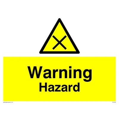 No Symbol This sign is made from vinyl / sticker ‘Air Release†vinyl makes it easy to stick to flat, clean surfaces without bubbles. Not for rough, plastic or dusty surfaces. A5 landscape Sign Text: Warning Hazard