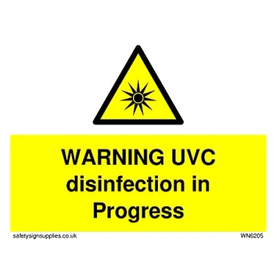 Pack of five WARNING UVC dinfection in progress Sign 100x75mm A7L