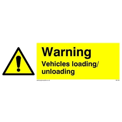 No Symbol This sign is made from vinyl / sticker ‘Air Release†vinyl makes it easy to stick to flat, clean surfaces without bubbles. Not for rough, plastic or dusty surfaces. 15 landscape Sign Text: Warning Vehicles Loading Unloading