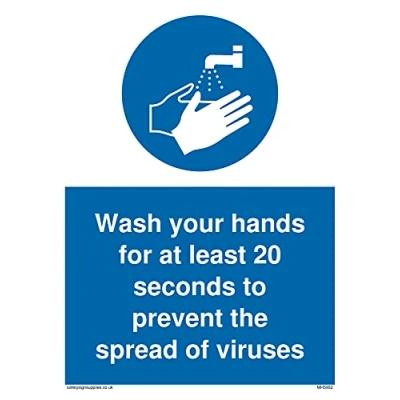 M011 : Wash your hands This sign is made from vinyl high tack A stickier sticker. Uses a stronger adhesive to make it more suitable for plastic surfaces like Wheelie Bins or where the sticker might get rubbed. A5 portrait Sign Text: Wash hands mandatory symbol