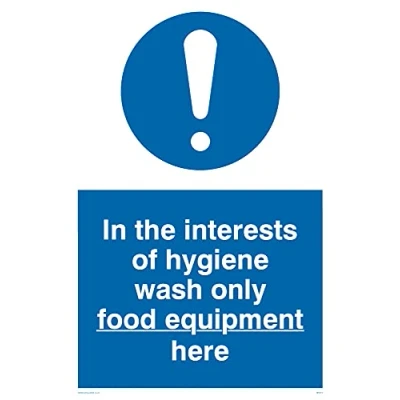 No Symbol This sign is made from vinyl / sticker ‘Air Release†vinyl makes it easy to stick to flat, clean surfaces without bubbles. Not for rough, plastic or dusty surfaces. A6 portrait Sign Text: Wash Only Food Equipment Here
