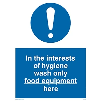No Symbol This sign is made from vinyl / sticker ‘Air Release†vinyl makes it easy to stick to flat, clean surfaces without bubbles. Not for rough, plastic or dusty surfaces. A5 portrait Sign Text: Wash Only Food Equipment Here