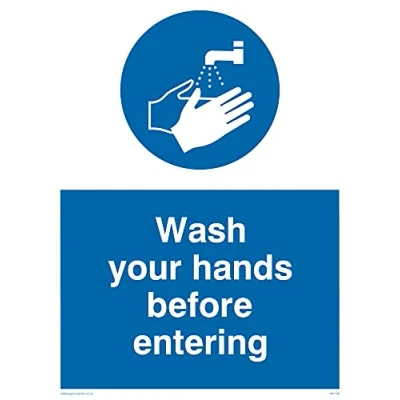 No Symbol This sign is made from vinyl / sticker ‘Air Release†vinyl makes it easy to stick to flat, clean surfaces without bubbles. Not for rough, plastic or dusty surfaces. A5 portrait Sign Text: Wash Your Hands Before Entering